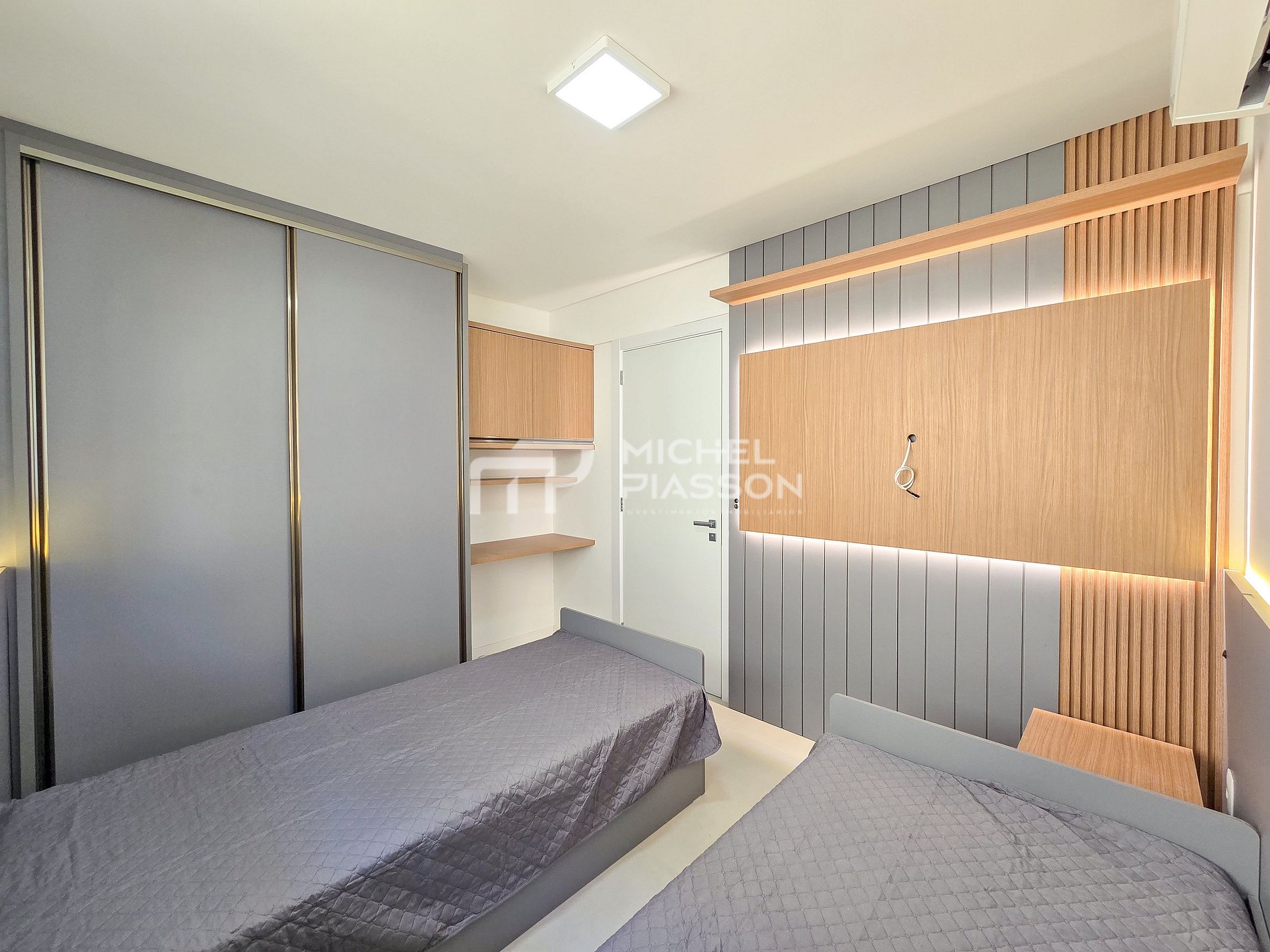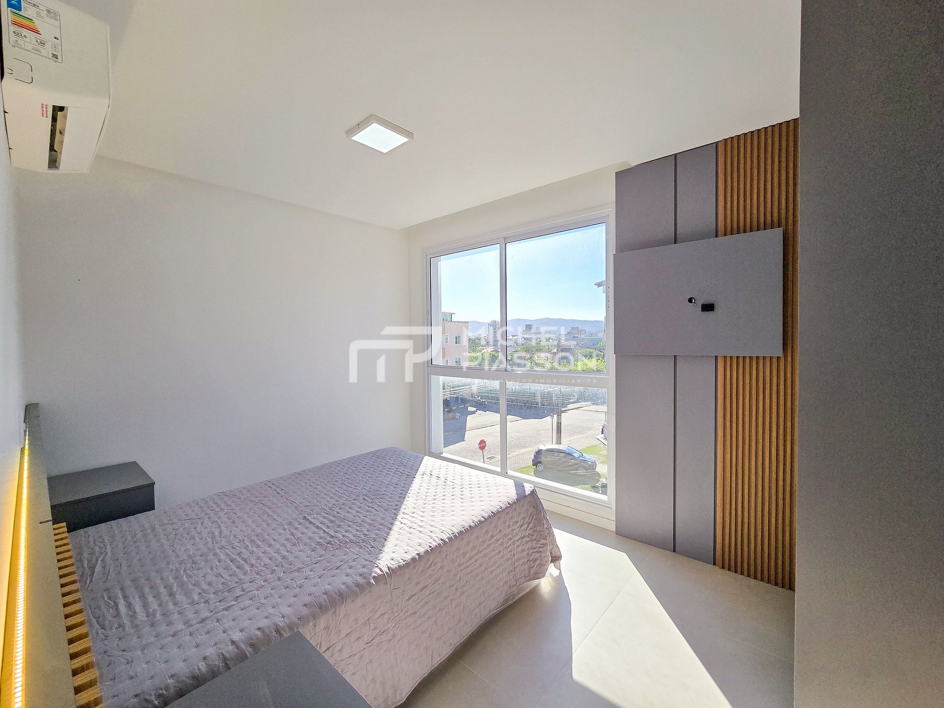 - 01 Suíte com 01 cama box casal + ar condicionado;