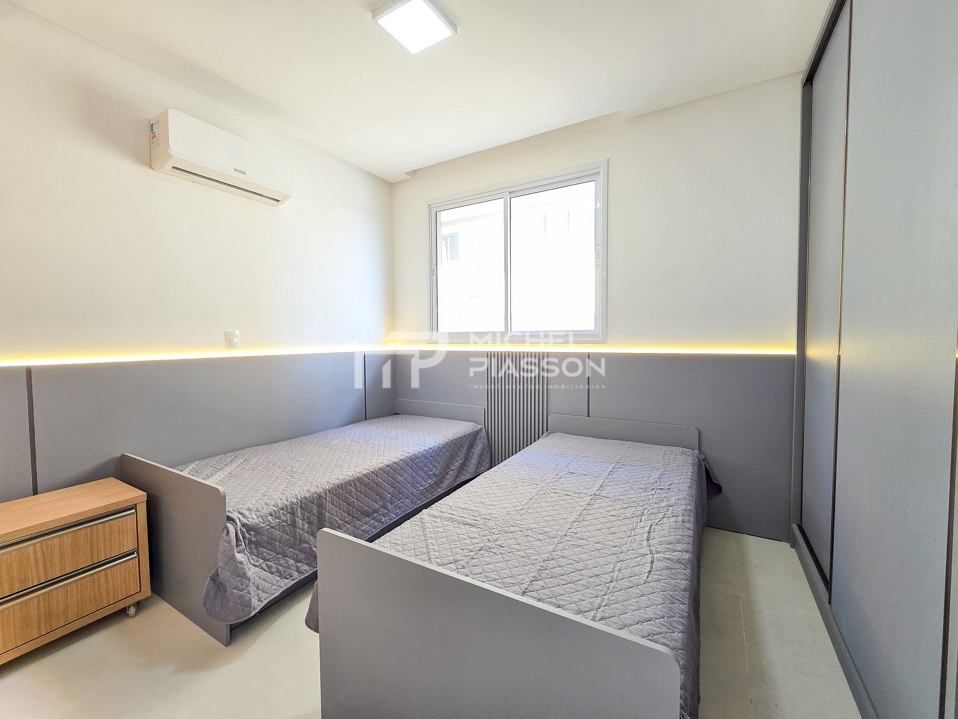 - 01 quarto com 02 camas box de solteiro + ar condicionado;