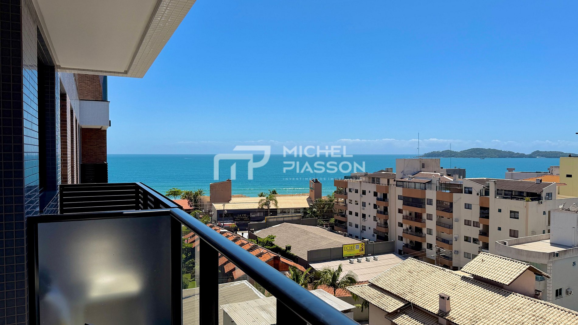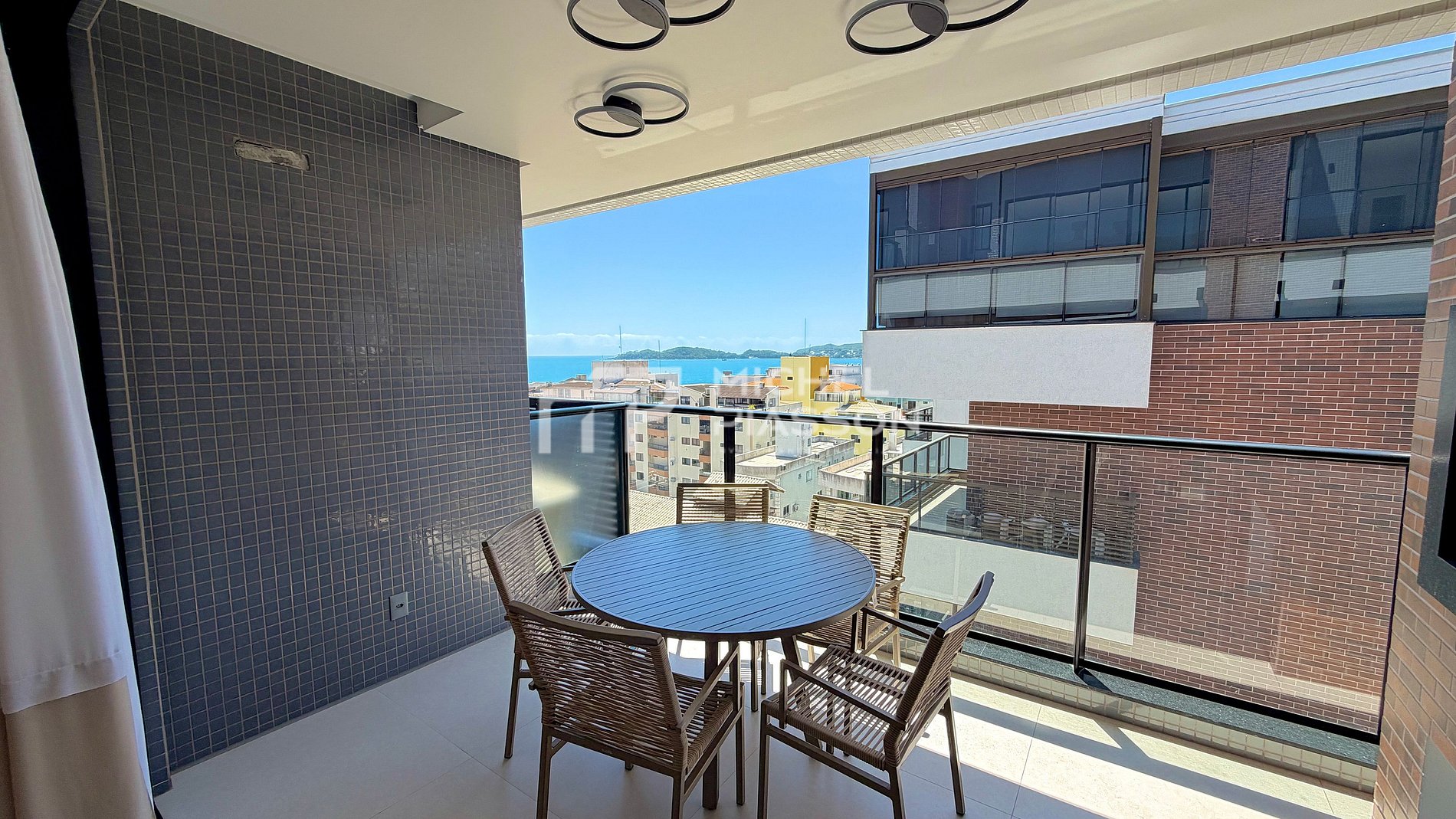 - Sacada com churrasqueira e vista mar;