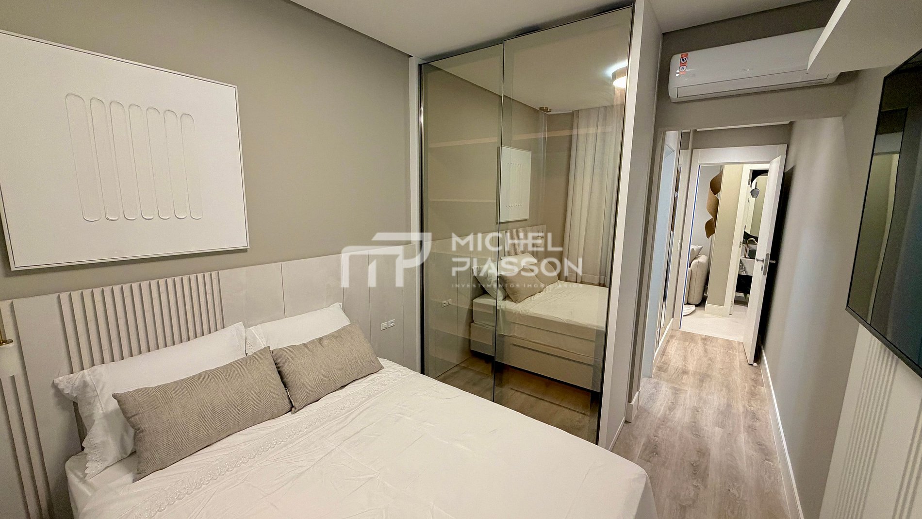 - 01 Suíte com 01 cama box casal + Smart TV + ar condicionado;