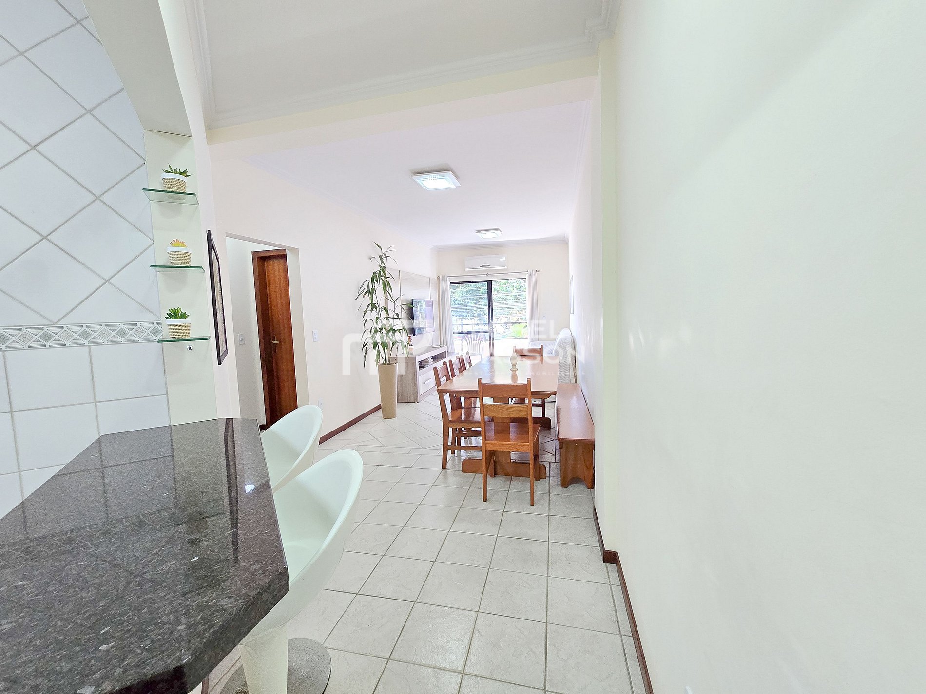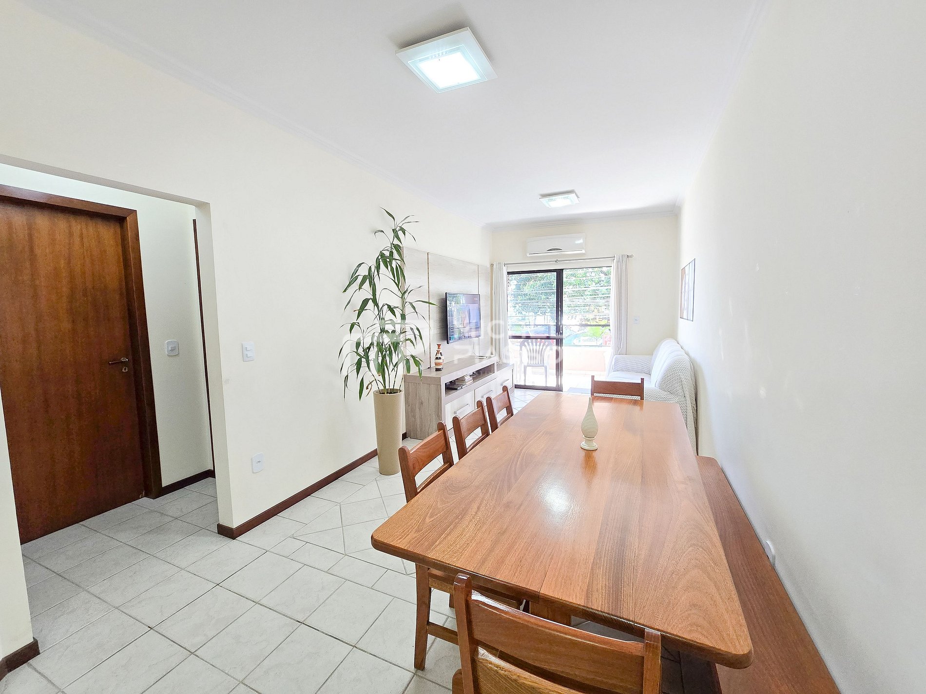 A sala se integra à varanda, ideal pra curtir um café da manhã com brisa do mar ou um jantar tranquilo depois de um dia de praia. Localização privilegiada, conforto e praticidade — tudo o que você precisa pra viver a melhor experiência em Bombas!