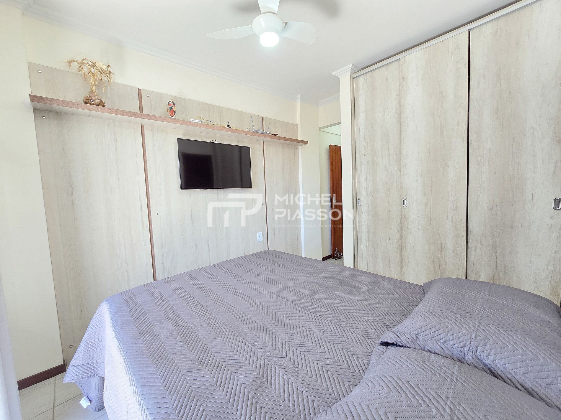 - 01 Dormitório com cama de casal; ventilador de teto com controle