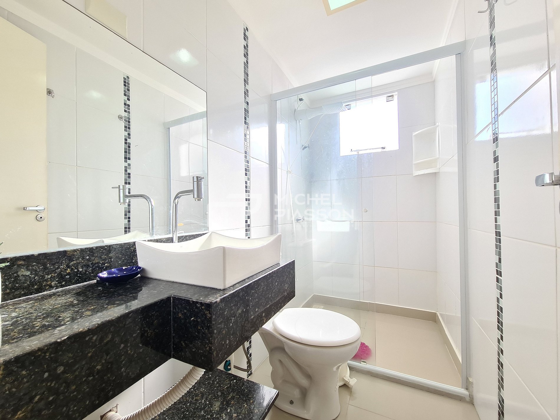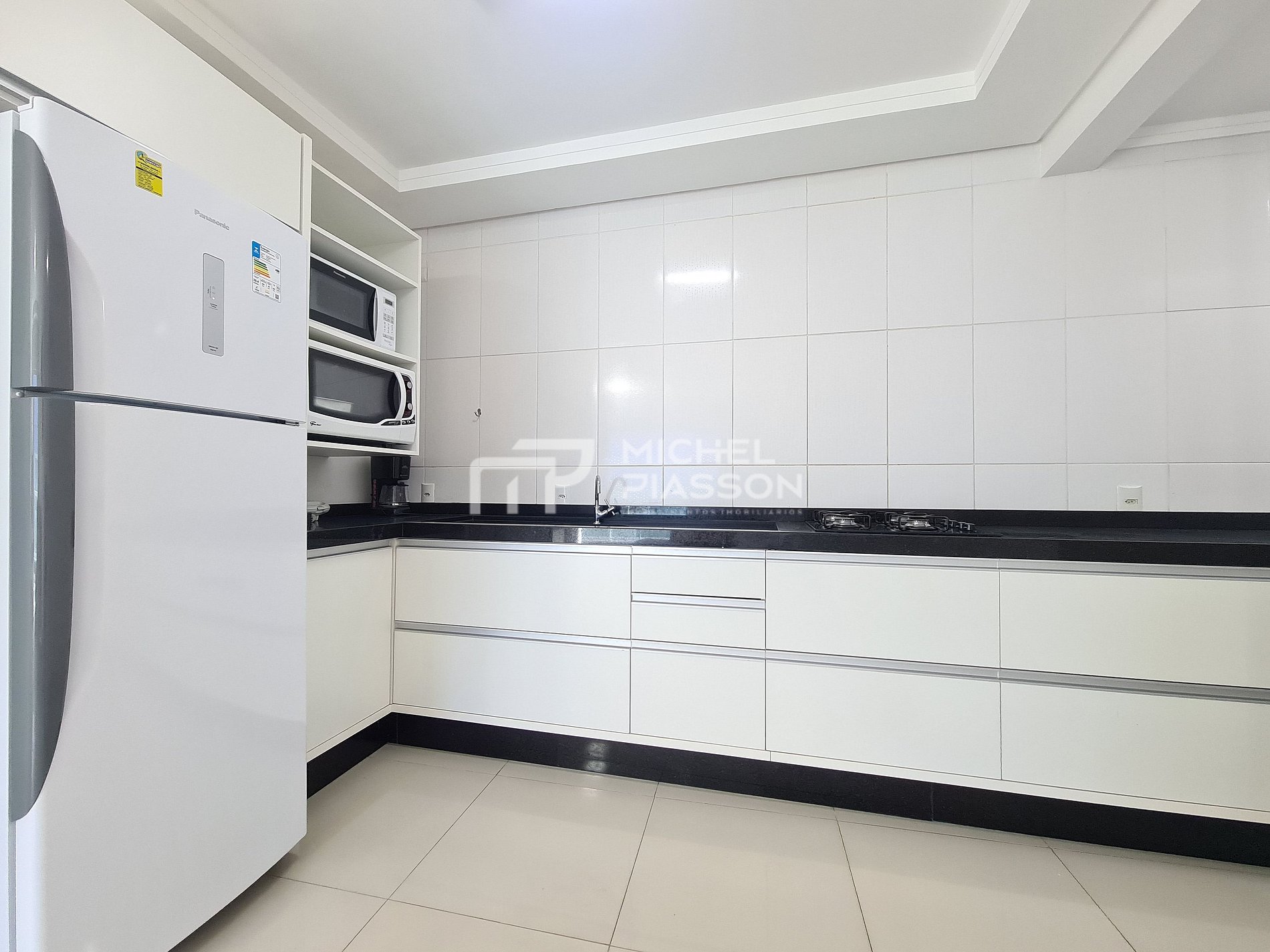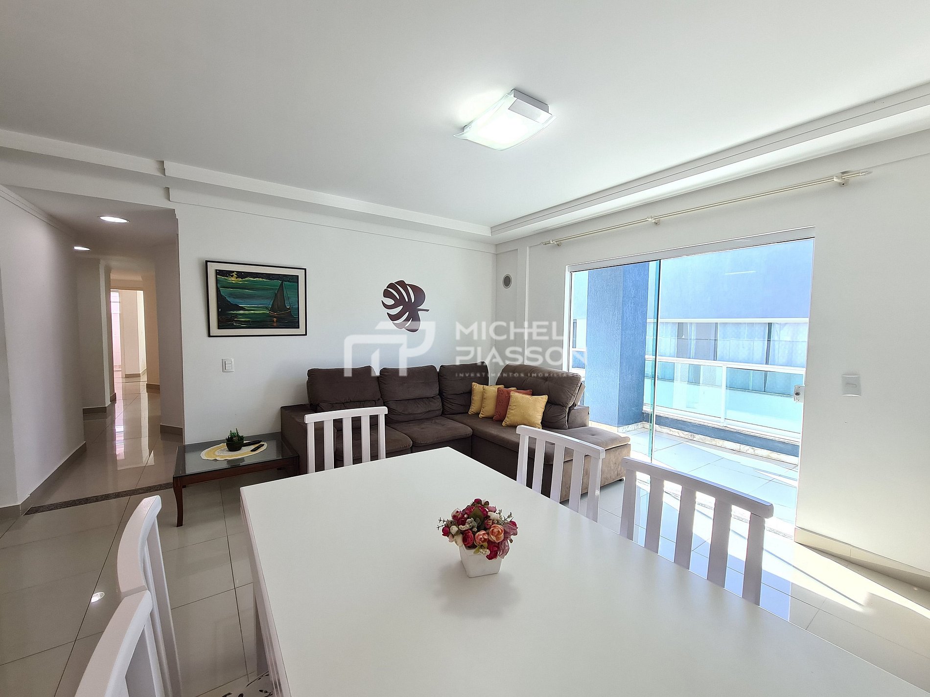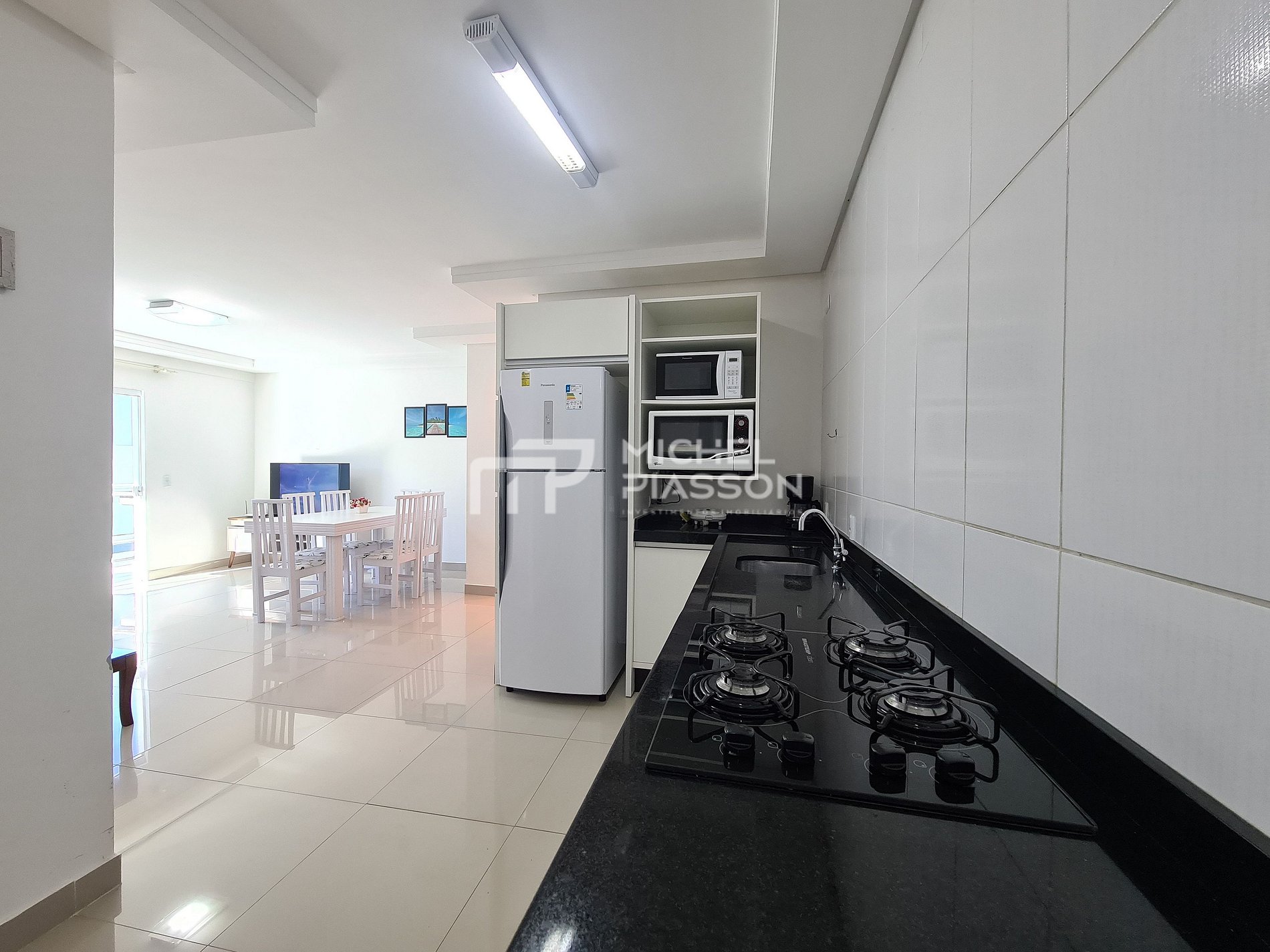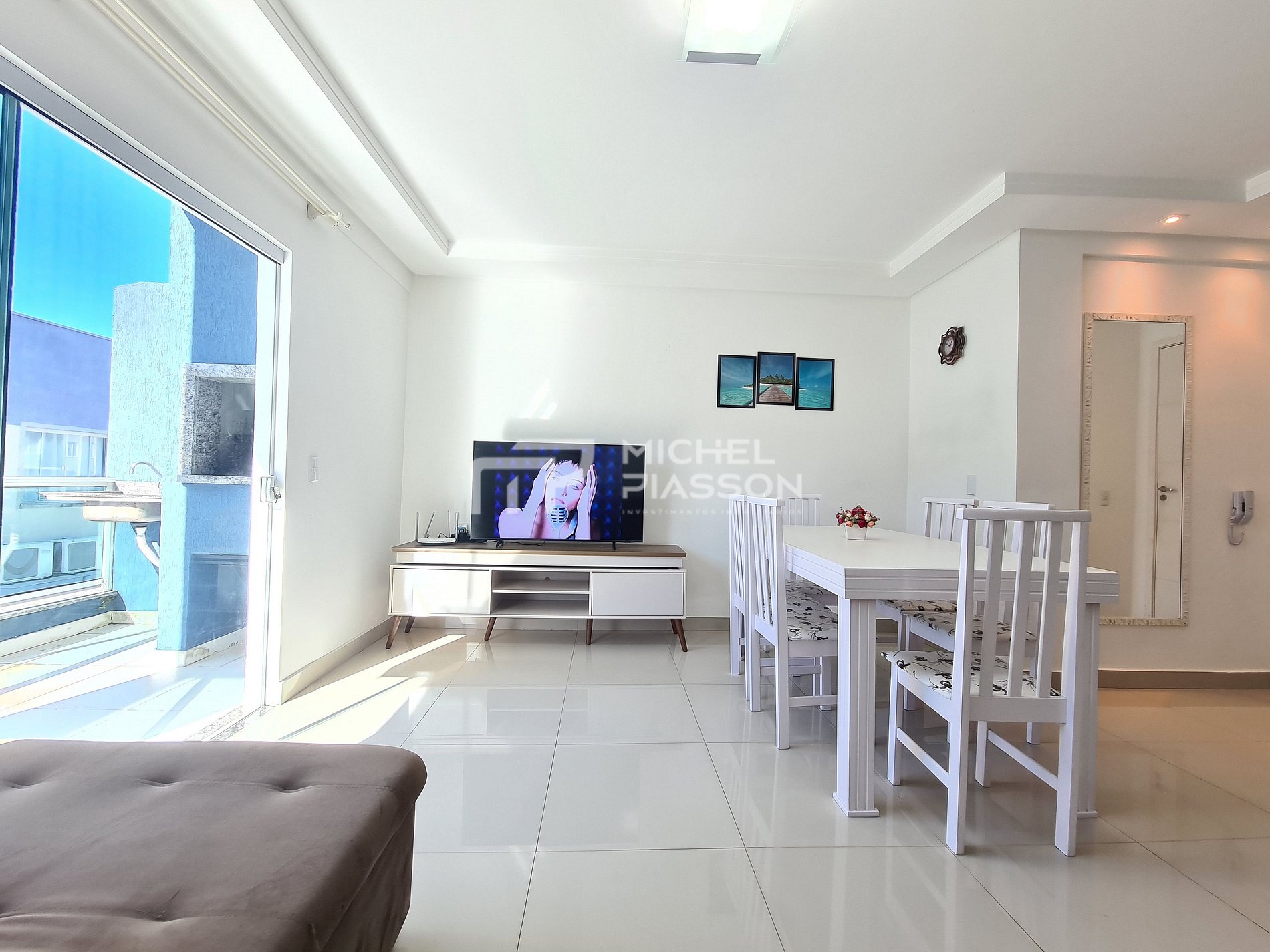No possui sala de estar, jantar e cozinha integrados, 02 banheiros, 03 dormitórios e um amplo terraço com churrasqueira. Com localização privilegiada está a apenas uns 380m de distância da Praia em condomínio com elevador e duas vagas de garagem!
