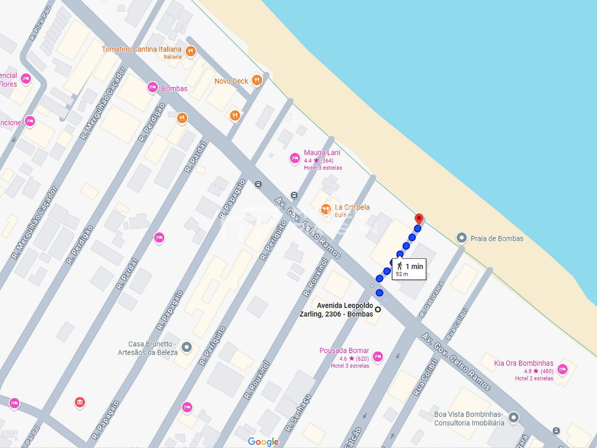 Apenas 80m da Praia de Bombas, para curtir o melhor do litoral com a praticidade de estar cercado pelo: comércio, restaurantes, farmácia — tudo a passos de distância.